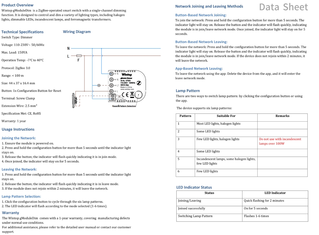 Function Features [Functions] Dimmer [Power Supply] L/N [Wire Connection] DIY Quick [最大负载] 150VA [Operating Voltage] 110-230V~ 50/60Hz [Rated Current] 10A Installation Benefits [Size] 44*37*16.4 mm
